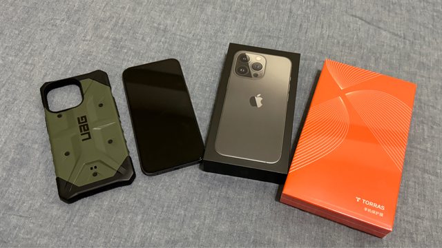 盒裝內含:原廠盒、原廠傳輸線,贈送防窺玻璃保護貼一盒、UAG防撞殼(有使用痕跡)