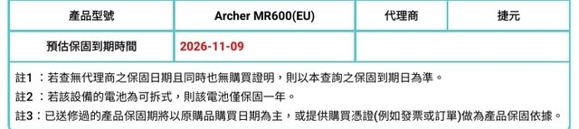 保固日期:2026年11月9日