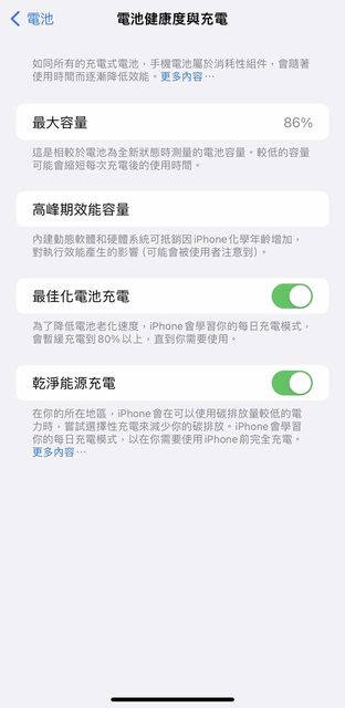 電池健康度86%