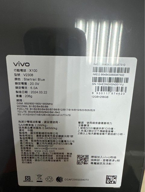 欲售物品:Vivo X100 256GB 藍色 台版