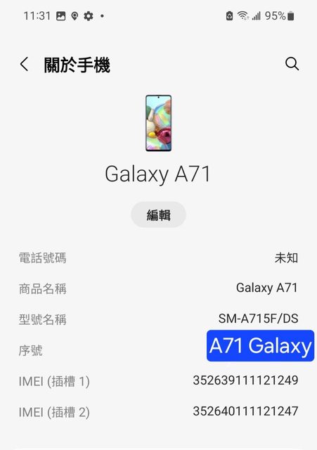 標題[賣/新北/面交] Samsung Galaxy A71 4G版 8/128