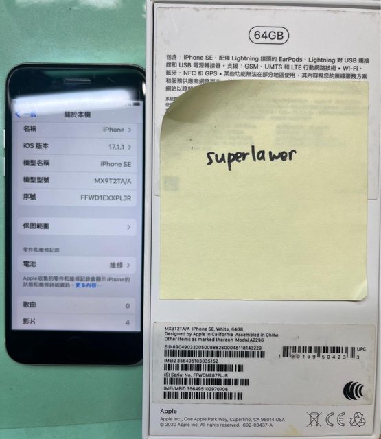 欲售物品:iphone SE2 64G 白
