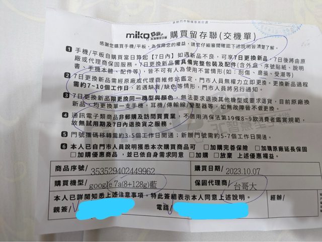 保固日期:113/10/07