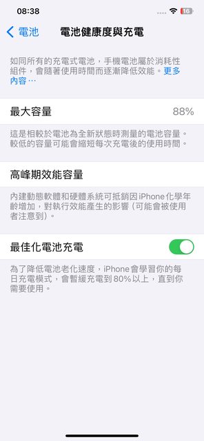 電池健康度88% 2023/7有更換原廠電池過