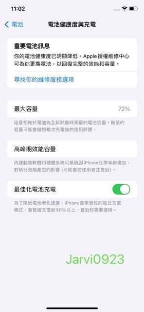 物品狀況:電池健康度72%、左下角有損傷、正面有螢幕保護貼、背面也有保護貼