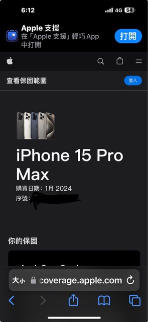 保固日期:2026年1月(2024年1月開通+applecare)