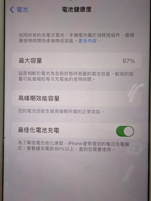 用機,很適合給老人家當手機使用,電池健康度還有87%