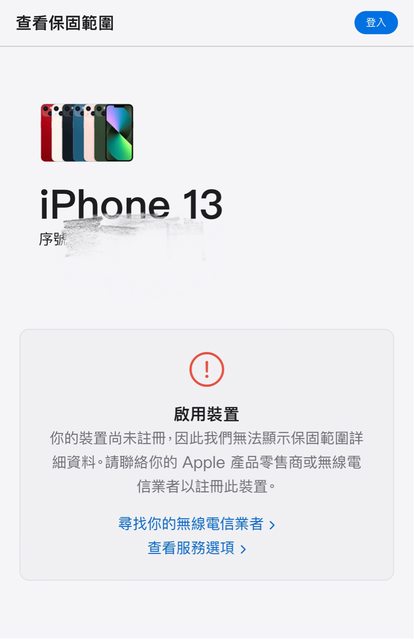 保固日期:尚未登錄