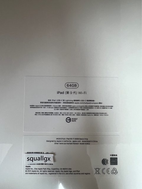 欲售物品:iPad 9th wifi 64g 灰