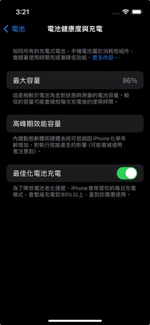 電池健康度86%