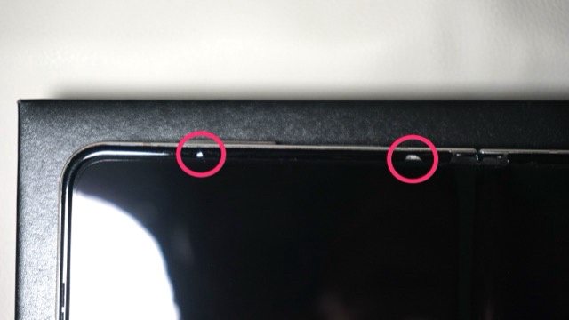 螢幕黑邊框有2處小傷如照片6,螢幕無傷且顯示正常無亮暗點或烙印,手機邊框及轉軸無