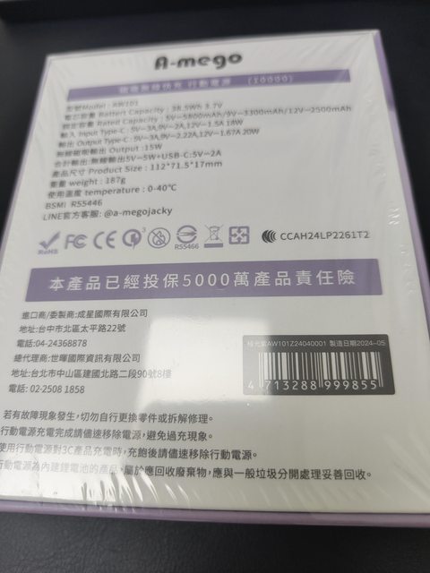 欲售物品:A-mego AW101 10000mAh磁吸無線快充行動電源 極光紫