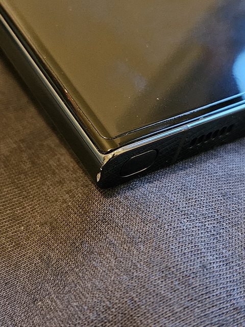 螢幕/背面無傷,兩個角落邊框小掉漆,估計拆裝保護殼時傷到(附圖)