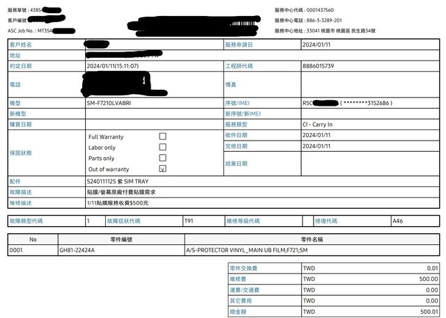 1月自費原廠換過保護貼