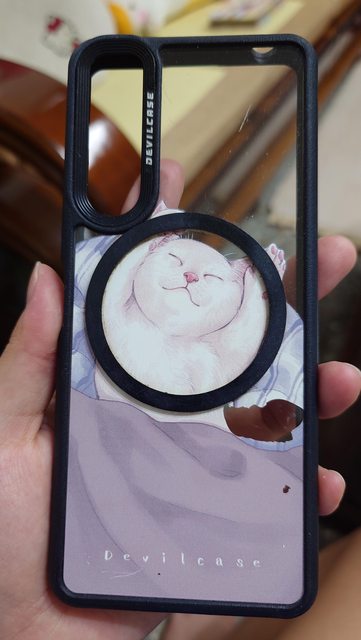 另外雖然乾掉看不太到,但用水擦拭過側邊可能有惡魔防摔殼內側紋路的烙印。