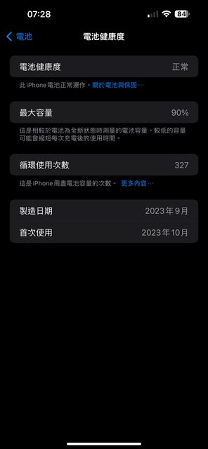 電池健康程度90%