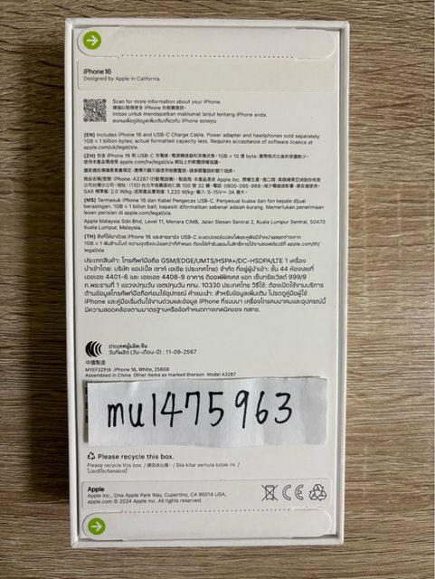 欲售物品 :iPhone 16 256白色
