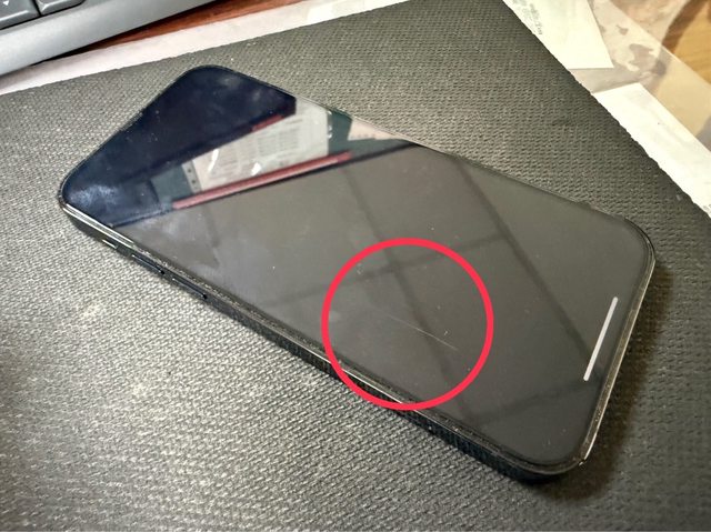 物品狀況:無拆修、無泡水、螢幕玻璃刮傷(放口袋造成,如圖)