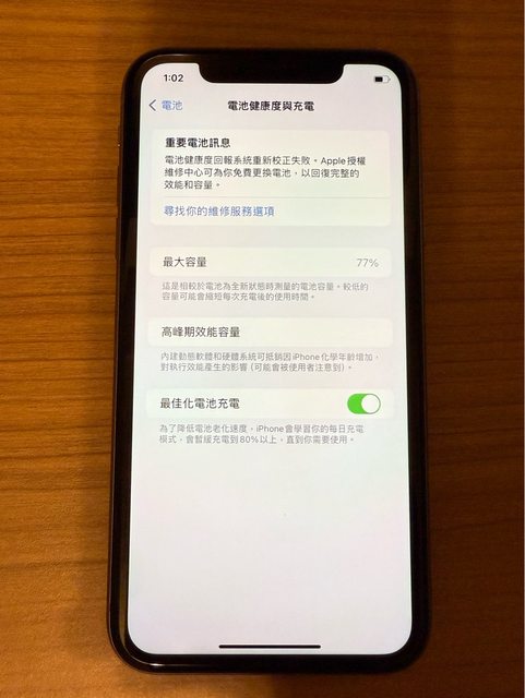 物品狀況:機身背面有和又下角有損傷,可正常使用,電池健康度77%