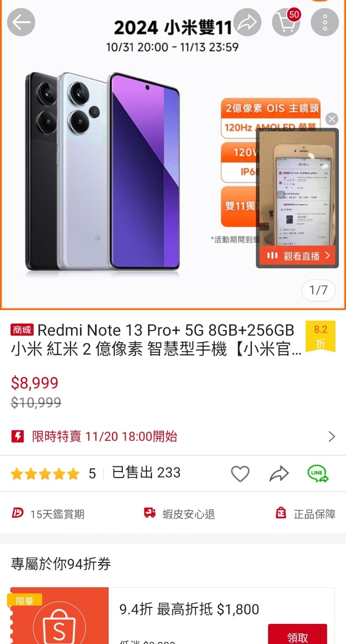 標題[賣/桃園/皆可] 紅米 Redmi Note 13 Pro+ 12/512