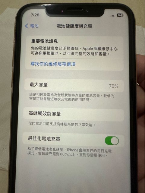 原廠電池健康度76%,功能皆正常使用,螢幕正常,有貼保護貼及手機殼。