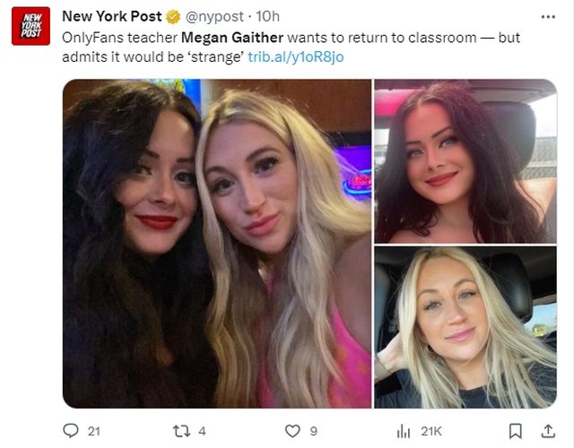 而另名被開除的女老師科佩奇與蓋瑟曾一起拍片,科佩奇於九月被學校發現拍攝OnlyFans