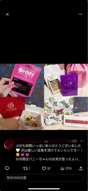 當天她還PO出了所有客人送她的禮物