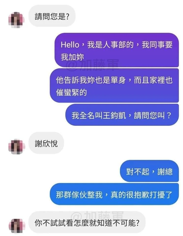 (PS.這裡有誤字,「主任」打成「主人」。是說對初次見面的女生就叫主人也太牙敗www)