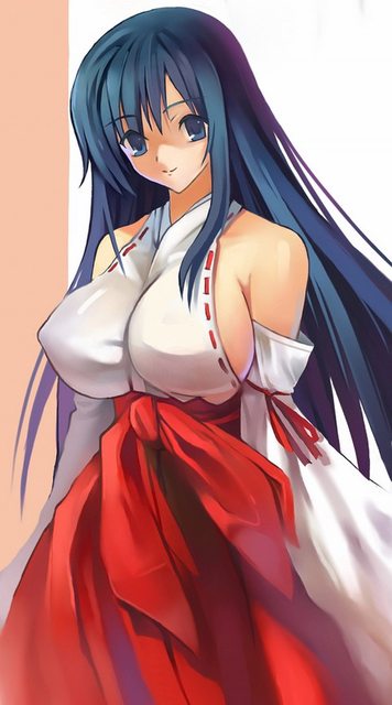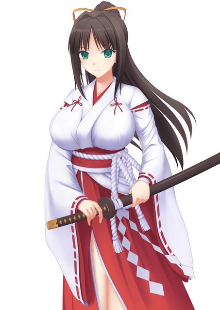 出現在門口的,首先是被爆乳撐出離腹部有好一段距離的白色小袖,白色小袖外面套了一