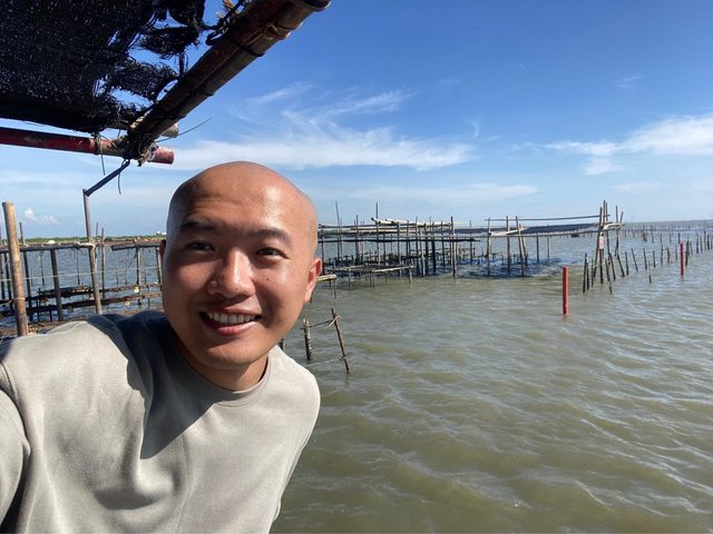 搭上王功採蚵鐵牛車興奮的我:
