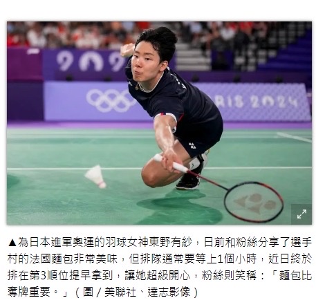 標題[新聞] 麵包勝過奪牌?日本羽球選手「歡喜吃到