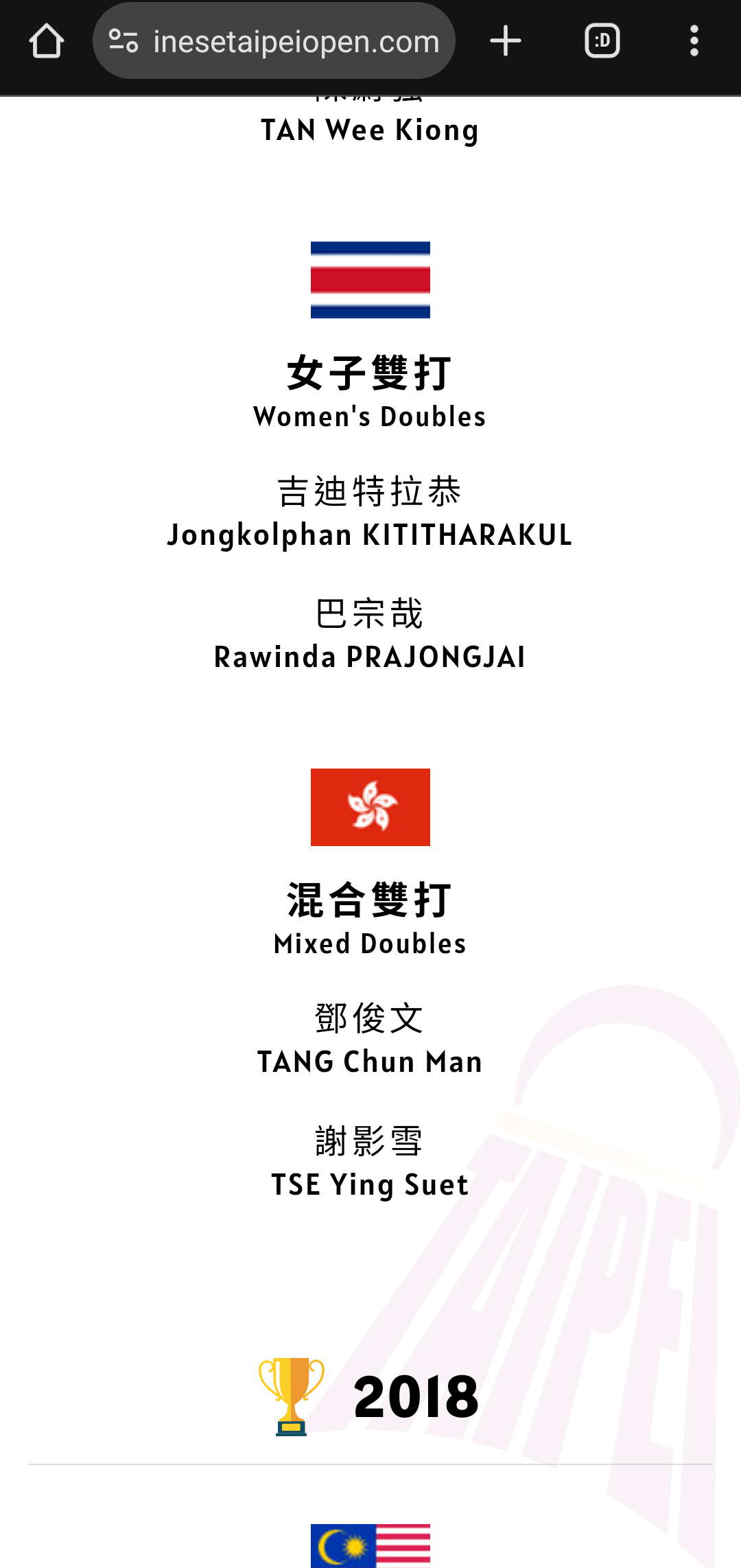 → ripple3902 : 台北公開賽官網歷年冠軍竟然放錯國旗 08/09 20:32