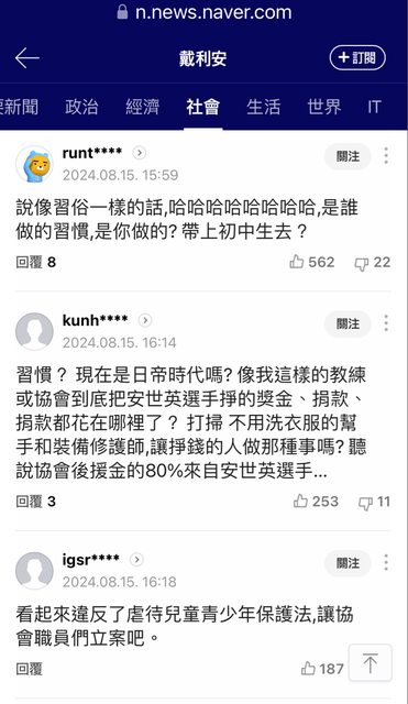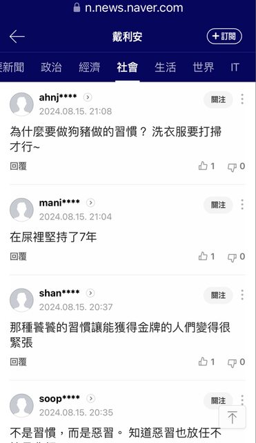 → QWE55874 : 我奧運金牌 你叫我還幫前輩打掃 洗衣服 成何體統 08/16 15:45