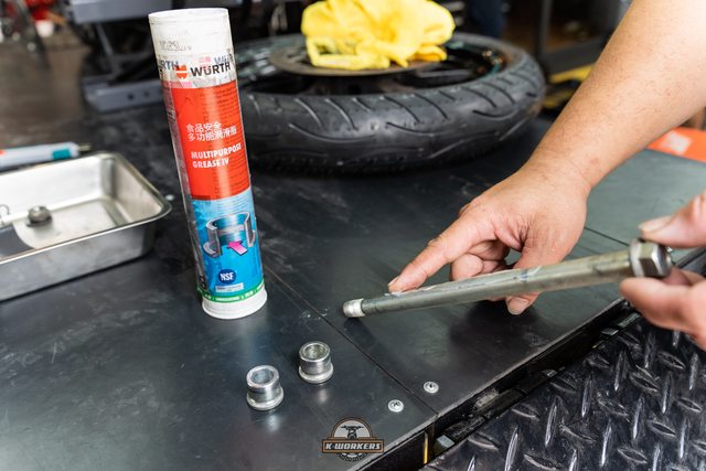 前輪軸芯塗上福士多功能潤滑脂
