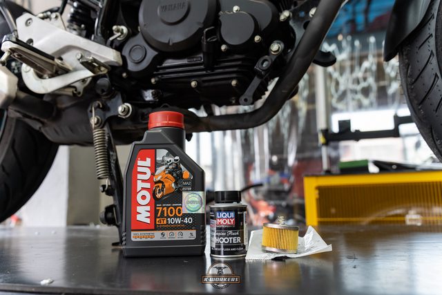 這次為FZS150更換的是MOTUL 7100 10W40和原廠機油濾芯