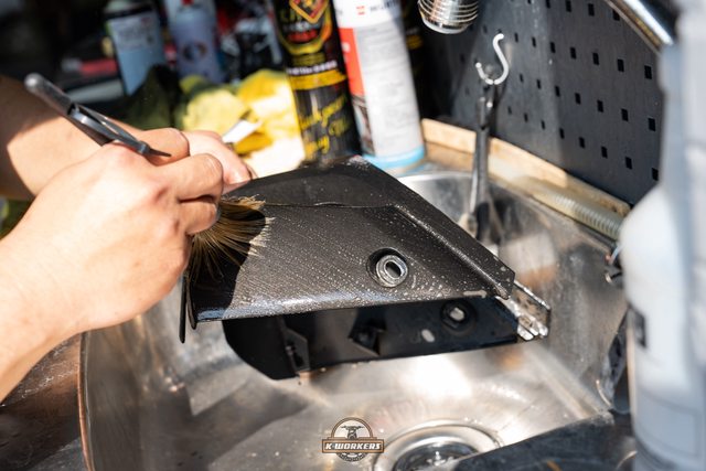 使用除蠟水幫輪胎除蠟