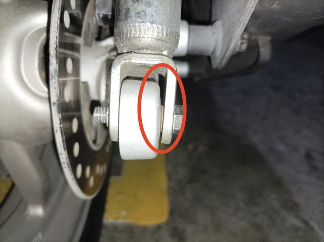 請問各位SR的車主,原廠後避震下座鎖點本來就沒有墊片之類的嗎?鎖緊後都變形了感覺