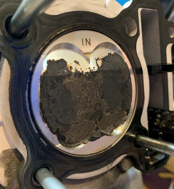 引擎翻新後使用約三千公里, 都沒使用紅線或其他油精, 活塞頂積碳略厚, 進氣門的積碳是小怪等級的積碳, 而排氣門積碳比進氣門多且較硬, 排氣溫度高,正常吧,應該。 ------------ https://i.imgur.com/JZdZBA0.png