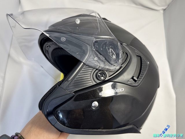 但整頂安全帽太黑,趁貼上史迪奇貼紙前先拍照開箱,