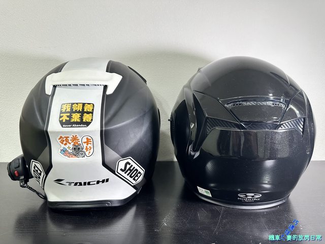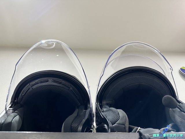 外鏡片補拍其他角度,左為OGK EXCEED,右為Shoei J-Cruise II;