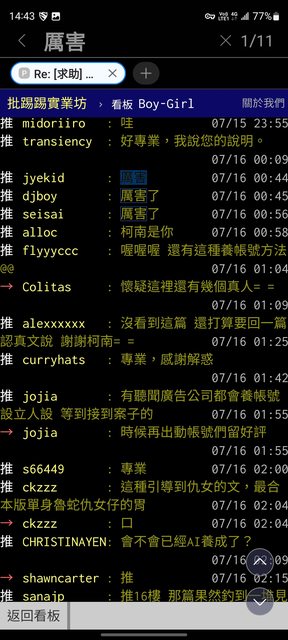 → birdjack : 2.那篇有很多同內容的短推文,機械推文是我的人馬? 07/17 17:50