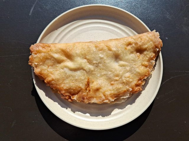 打開來實體是呈現半圓形狀 跟超商蔥油餅等形狀有點類似