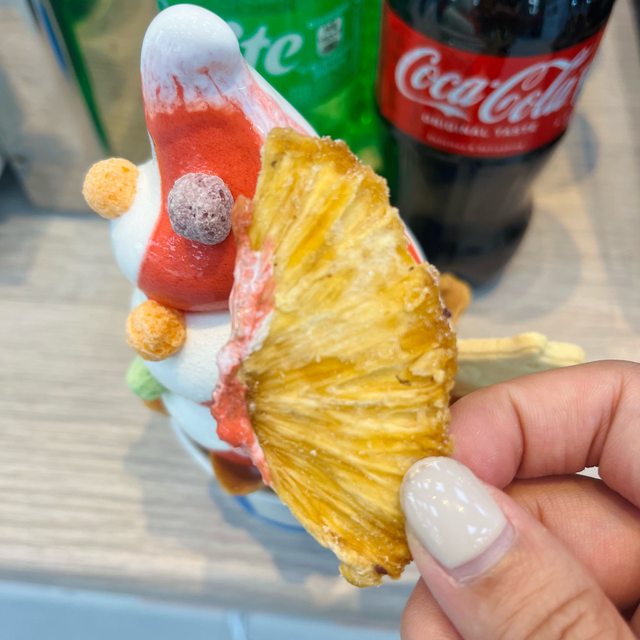 聖代的話會有繽菓球+鳳梨果乾,另外還會加一隻小牛,整個看起來蠻豐富的XD