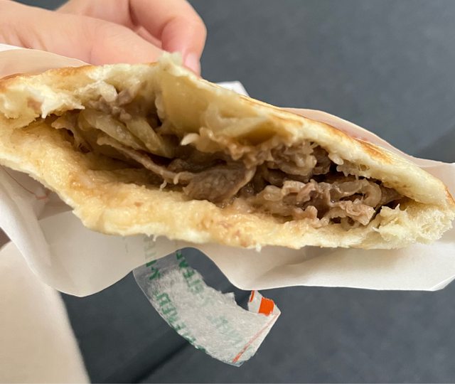 吃起來很像日式醬油的洋蔥牛肉,然後沒什麼醬汁在裡面,但是還算有味道,偏甜