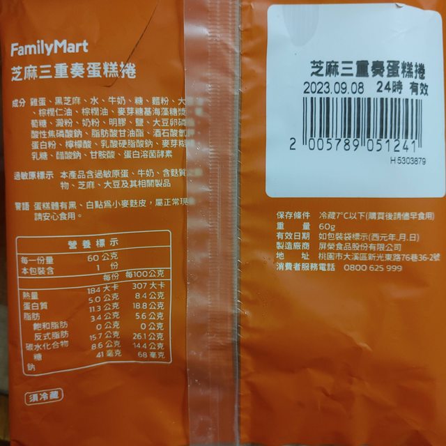 標題[商品] 全家 芝麻三重奏蛋糕捲