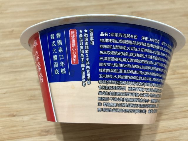 【規格/內容物/熱量】:309公克/泡菜、年糕、冬粉、豆腐/124大卡