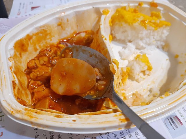 照片可以看到醬汁跟白飯的份量比例剛好,不會有醬沒了白飯還有剩的狀況。