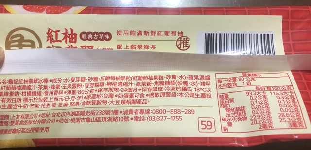 【商品名稱/價格】:龜記紅柚翡翠冰棒/59元