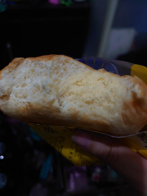 撕開包裝就聞到麵包的香氣,咬第一口竟然沒咬到餡!?,咬第二口才咬到卡士達餡,原來在