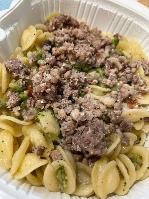 【商品名稱/價格】:青花菜香腸肉末貓耳朵麵